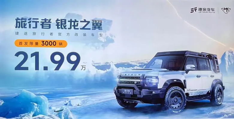 1 月 28 日消息,捷途旅行者银龙之翼正式上市,售价 21.99 万元,首发限量 3000 辆。作为捷途汽车官方改装品牌 JMK 首款车型,旅行者银龙之翼基于捷途旅行者进行了深度越野改装,整体造型更加硬朗霸气。今天就一起来看看这款个性的定制车型吧。