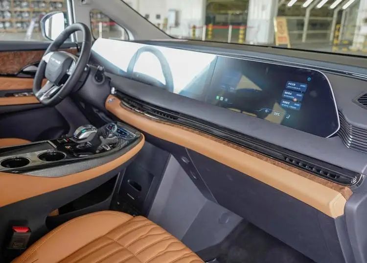 内饰注重科技感,三联屏几乎贯穿了整个中控台,悬浮式岛台上配备水晶电子挡把、手机无线充电面板以及双杯架。