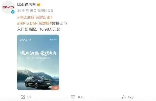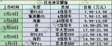 2月19日,比亚迪首次喊出“电比油低”的口号,荣耀版车型来袭。截至3月1日,已有8款比亚迪荣耀版车型上市,覆盖A0级轿车到C级轿车、紧凑型SUV与中大型SUV、纯电与混动。