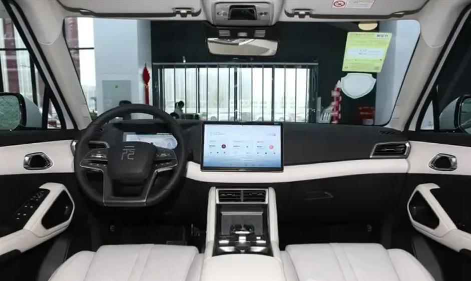 内饰方面,元UP采用元气环抱式座舱设计,车内线条流畅。配备内嵌式的8.8英寸全液晶仪表盘、多功能方向盘、中控屏幕配备12.8英寸悬浮式多媒体触控屏、手机无线快充等,科技感十足。车内座椅采用白色+暗灰色的配色,凸显其高级质感。
