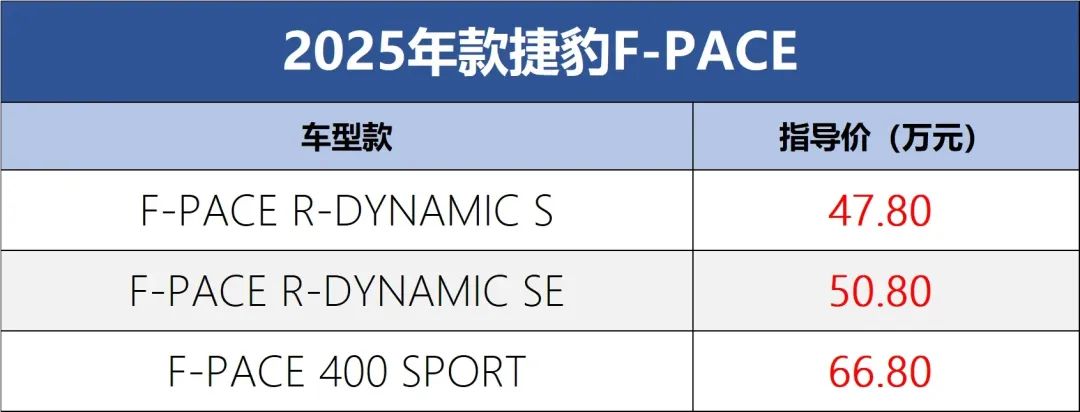 2025年款捷豹F-PACE正式上市,起售价47.8万元 !