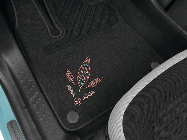 Hipanema这个品牌充满巴西风情,最出名的饰品是设计独特复杂的手环组合,多由珍珠,贝壳和五彩线组成。新款Twingo A Taste Of Brazil特别版的命名灵感也来源于此,雷诺为这款特别版车型设计了蓝色糖衣、黄色泡芙、白色水晶、黑色星辰共四款糖果色车身涂装。