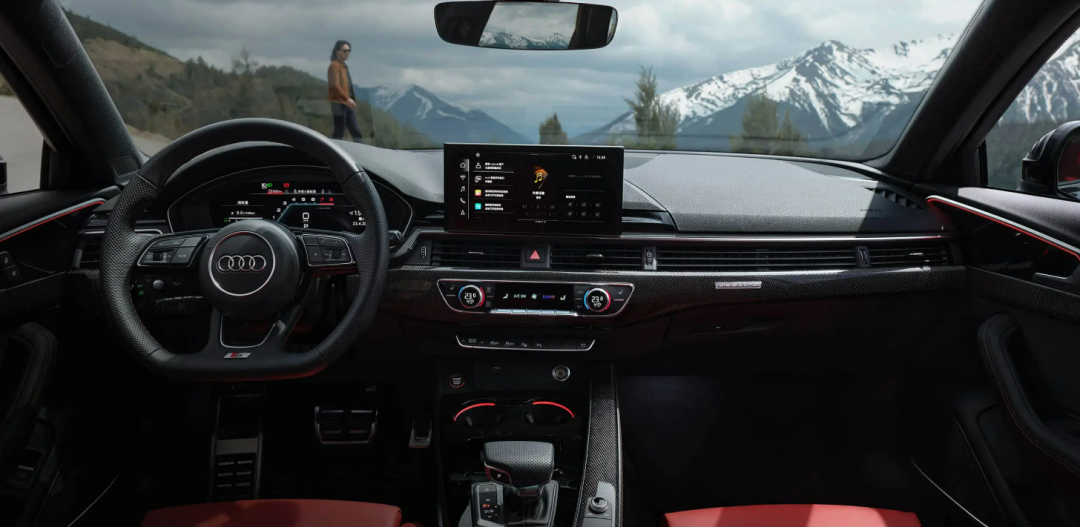 内饰方面,2025款奥迪S4 Avant同样表现出色。车内配备了12.3英寸全液晶仪表盘和10.1英寸悬浮式中控屏,搭载三辐式运动方向盘,营造出强烈的科技氛围。此外,新车还标配了HUD抬头显示系统,让驾驶员无需低头即可获取重要行车信息,提升驾驶安全性。