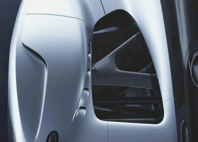 车门采用鸥翼式开启,两侧饰有“鲨鱼腮”镂空导流口;四个轮眉内侧掏空设计,协同作用可产生高达1700kg的下压力;轻量化结构:整车整备质量控制在900kg以内,推重比惊人。