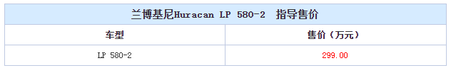 天翼汽车车讯 日前,兰博基尼官方正式公布了Huracan LP 580-2车型的售价,该车售价为299万元,目前该车已经能够接受预定。