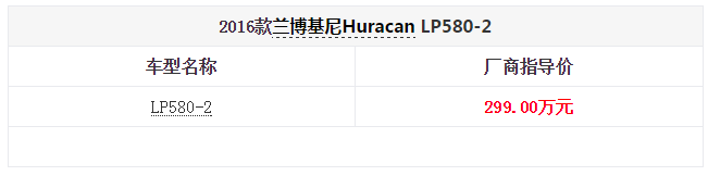 售价299万元起 兰博基尼Huracan LP580-2售价公布