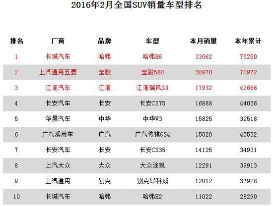 合资方面,本月仅大众途观及别克昂科威入选前十,分列第八、九位。上月排名第九的日产奇骏则滑落至第28位。