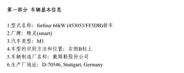 从环保目录透露的信息来看,信息图中的smart forfour搭载了一台0.9T涡轮增压发动机,其最大功率为66kW(90Ps),匹配6速双离合变速箱。新车还将提供一台1.0L自然吸气发动机,其最大功率为51kW(70Ps),传动部分匹配5MT手动变速箱或6速双离合变速箱。