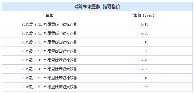 售价6.18-7.38万元 瑞铃V5限量版正式上市