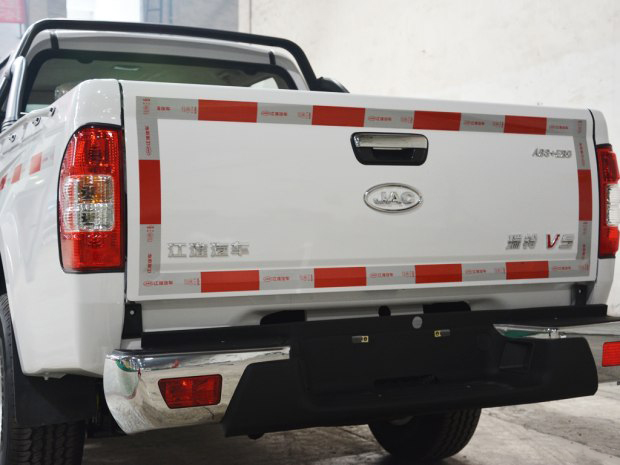 外观方面,瑞铃V5限量版的前脸采用了全新的三幅格栅,并加入镀铬饰条装饰,整个造型较为圆润。大灯的样式比较锋利,并配备有前雾灯。其中标准货厢车型的车身尺寸为5165×1720×1735mm(1800mm),轴距为3025mm,其货厢尺寸为1380×1450×475mm;而长货厢车型的车身尺寸为5520×1720×1735mm(1800mm),轴距为3380mm,货厢尺寸为1735×1450×475mm。货厢两侧配有锚点,以方便捆绑货物。车尾保险杠集成了踏板功能,上下货厢更方便些。