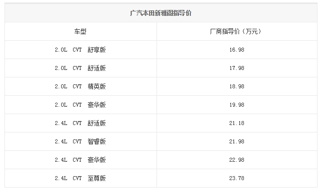 广汽本田新雅阁上市 售16.98万-23.78万元