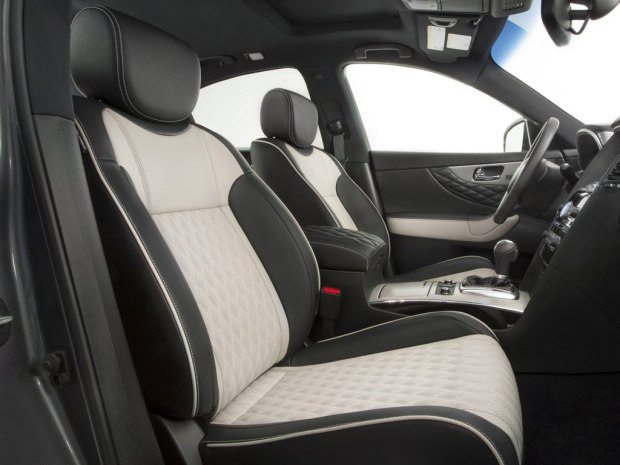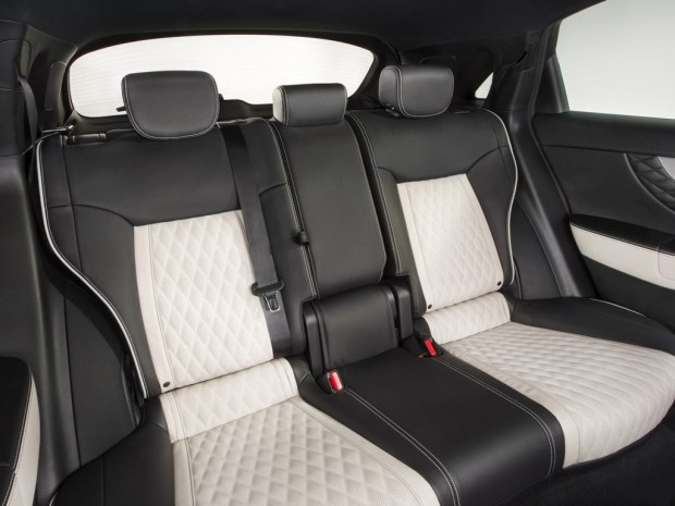 内饰部分,新车采用黑白双色配色,座椅也运用了黑白相间的座椅搭配,并辅以菱形图案。另外,其中控台的整体设计与现款QX70没有变化,但增加了铝制饰板进行了装饰。