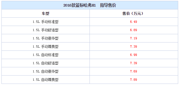 售价6.49-7.89万元2016款蓝标哈弗H1正式上市