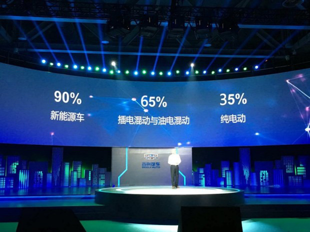 到2020年,新能源汽车销量将占吉利整体销量的90%以上,其中插电式混动与油电混动汽车销量占比将达65%,纯电动汽车销量占比将达35%。这意味着在未来吉利在国内销售的绝大部分车型将是新能源车。为了达到这一目标,吉利汽车构建了PE、FE纯电动车平台,GHS油电混动车型平台以及上述的插电式混动动力系统平台。