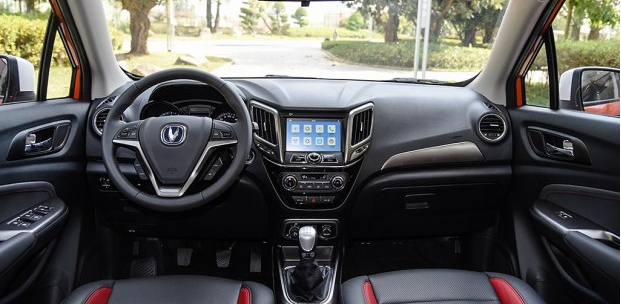 内饰方面,CS15的内饰设计与其它的长安车型类似,中控台采用了长安徽标的造型,双炮筒式仪表盘阅读清晰,仪表中央的行车电脑采用单色显示屏。中控台上配备7英寸显示屏的多媒体系统功能比较强大,可通过App与手机连接,日常使用比较方便。配置方面,根据车型不同,CS15配备了LED日间行车灯、后视镜加热、后视镜电动折叠以及后座出风口等。