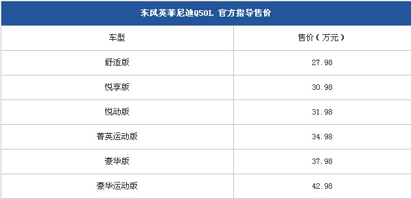 16年新款英菲尼迪Q50L正式上市 官方售价低至27万起