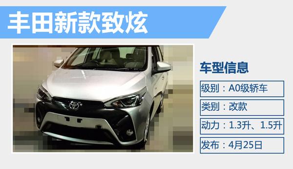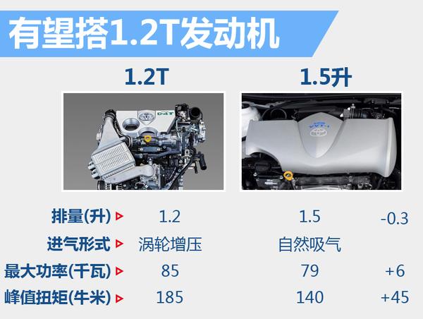致炫(参配、图片、询价) 是广汽丰田旗下一款A0级轿车,现款车型搭载1.3升和1.5升两款自然吸气发动机,如今该车将迎来改款车型。此前丰田发布了全新的1.2T涡轮增压发动机,基于产品定位,未来致炫有望搭载这款发动机。