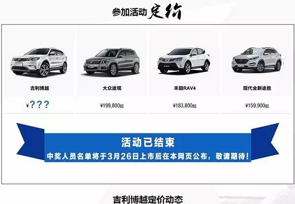 排量并不代表性能,官补也并不代表便宜,当竞争对手相继改款上市之后,博越言高价低的定价策略,不过是为了给产品在纷繁的市场里找一个看起来比较合适的位置而已。SUV已近红海 博越的未来还将面临严酷考验即便博越拥有很高的人气和很好的产品性价比,在偌大的车市,博越也只是给自己起了个好兆头而已。在这个适合踏春的三月,有太多的SUV进入市场,如3月10日英菲尼迪QX50、奔驰GLS、起亚KX5、3月15日陆风X5Plus、3月18日东风雷诺科雷嘉、全新观致5、3月19日东风风度MX6、3月21日广汽传祺GS4、3月22日长安CS75、中华V3二代、3月26日吉利博越、3月28日昌河Q25、全新汉兰达等等。尽管这些车型不一定是博越的竞争对手,但是当众多厂家争相恐后的挤入这个市场,这本身就说明市场生态正在发生变化。 最关键的是,虽然SUV销量呈上扬态势,但SUV的价格也呈现出跳水态势。从博越的竞争对手来看,哈弗H6已经将入门车型价格下探至8.88万元。博越的另一个竞争对手——长安CS75也在新车上市的时候下调售价。无论8.88——14.58万元的长城哈弗H6还是9.28-13.98万元,它们的共同特征就是在入门级产品方面更为便宜。而吉利博越,即便官补之后,还是比哈弗H6和长安CS75贵一些。