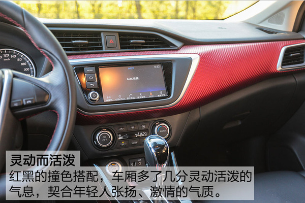 环抱式的中控设计同样足够抢眼,年轻、动感气息浓烈,符合年轻一族的审美需求。中控台向驾驶者偏向5°,营造“一切以我为中心”的驾驶氛围,相关功能操作得心应手。