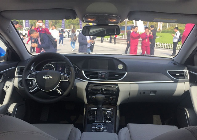 内饰方面,该车内饰延续了江淮一贯的设计风格,中央大屏被镶嵌在中控台内,并略偏向驾驶席位,另外,该车中控台采用了木纹材质装饰,而空调出风口包裹着银色镀铬装饰。整体风格很大气。