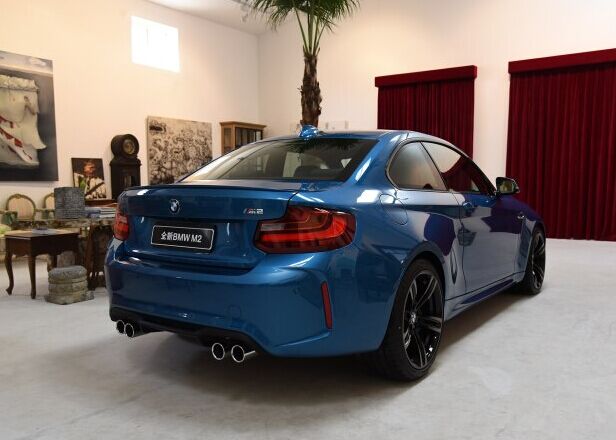 宝马M2的外形设计凶狠,前保险杠采用了全新的空气动力学套件,家族式的双肾进气格栅采用黑色条幅处理,并镶嵌了M2的标识,以表明身份。此外,蓝色的对向四活塞刹车卡钳、19寸的双五辐轮圈以及双边共四出排气设计极具运动感。