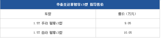 售价9.05-10.05万 华泰圣达菲首推智享i3型
