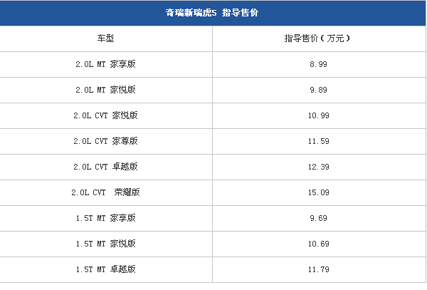 新款瑞虎5小改款 配置升级售价下调你值得拥有