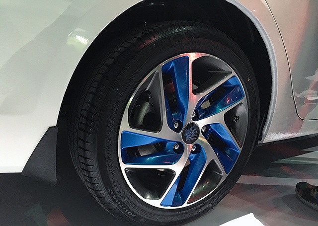 秦100采用了新款轮圈,相比之前被人诟病的山寨范轮圈,新车蓝白相间的轮圈更能体现出秦新能源车的特殊身份。