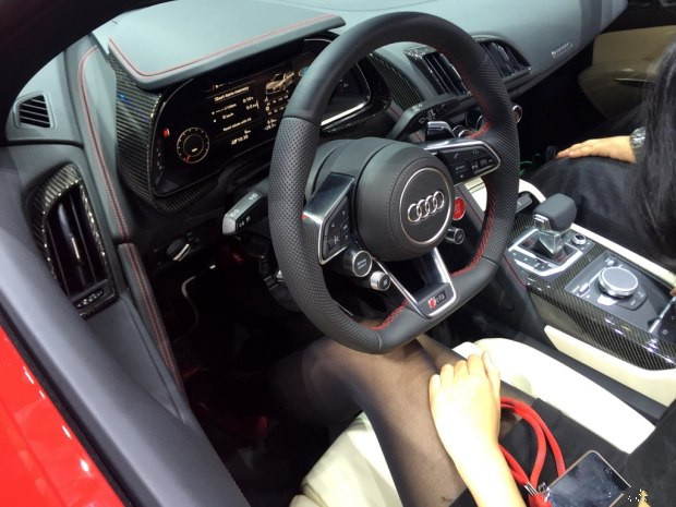 现场的工作人员传回的消息,奥迪新一代R8敞篷版就在车展上进行了国内首发,新车此前在纽约车展迎来了全球首发,相比现款车型在造型设计动力上均有所升级。
