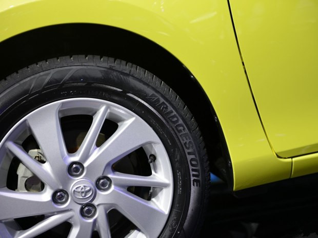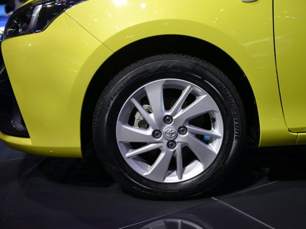 轮圈样式虽然做成了回旋状,但实际看起来还是比较普通的。轮胎尺寸185/60 R15,轮胎品牌为普利司通。