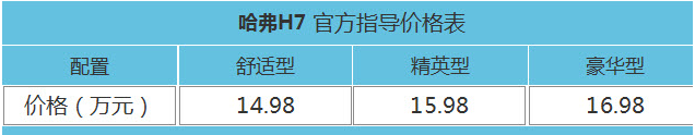 哈弗H7搭载2.0T双流道直喷发动机,匹配格特拉克6DCT变速器,共有3种配置,售价为14.98万-16.98万元。