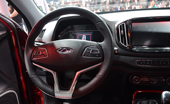 北京车展上的瑞虎7还没有最后定型,一些配置设计可能会有所改动。实车并没有配备标准天窗,希望最好把全景天窗给加上。中控台设计很简洁,按键也很少,功能性不多,但整体性,层次性很强。三辐式方向盘拥有常规多功能按键,并有少量镀铬亮条装饰。方向盘中间大小刚合适,并不会像一些车型一样,挡住仪表盘视线。简洁的内饰设计其实更有利于专注驾驶,提高驾驶安全性。