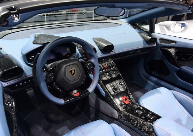兰博基尼Huracan Spyder在外观方面与硬顶版车型基本保持了相同的设计,不同的是新车配备了一套黑色软顶敞篷结构,该车前后配重48:52,搭载的电动软顶敞篷可以在50km/h的速度下在17秒之内完成敞篷的开启和关闭。