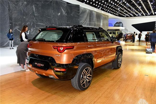 尾部方面,北京汽车BJ20同样具有机械感,两侧圆形尾灯旁带有四边形装饰,后保险杠跨界车风格套件突显,排气则是运用了双边共两出扁口造型。