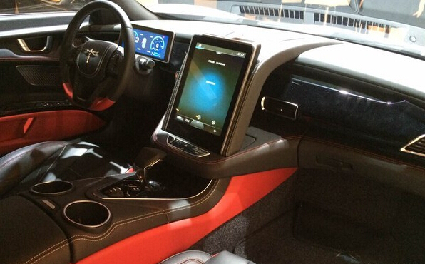 内饰方面:量产版本的车型采用了新设计的方向盘样式,内饰由全真皮包裹,中控采用了大尺寸液晶显示屏,并配备有桶型运动座椅,座椅头枕还刺有前途的车标。
