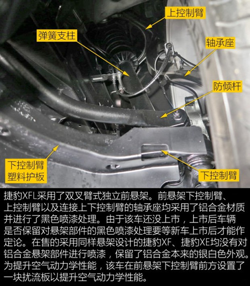 天翼汽车讯:捷豹XFL,它是一款全铝结构车身的豪华中大型车,可谓是一件领先的工艺品,可以说它的一切都是以高水准而打造,当然底盘的做工也是不例外的。