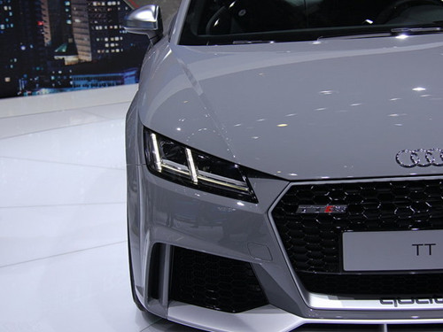 作为高性能车型,奥迪TT RS Coupe外观上比普通的TT车型要强悍的多,前脸线条更加硬朗,更霸气动感,采用了六边形黑色蜂窝状前格栅,搭配大尺寸的下进气格栅,银色的空气动力学 套件很是个性。前格栅上面的quattro字样突出其是一款由奥迪旗下quattro部门打造的性能车型。