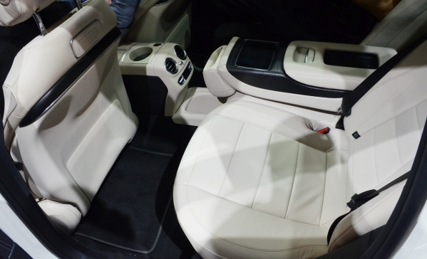 来到后排可以看到加长后最明显就是腿部空间非常充裕了。前排扶手延伸出来的杯座是为后排乘客所准备的,这个杯座可以加热和制冷,据说这是中国版专属的配置。