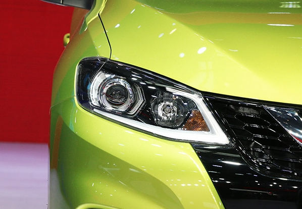 实拍的顶配车型配备LED大灯和C字日间行车灯,视觉效果犀利。其中只有顶配车型才配备LED大灯,其它的车型均为卤素大灯。