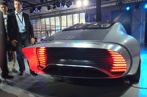 奔驰IAA概念车此前在2015年9月的法兰克福车展首发。奔驰IAA概念车名称中的“IAA”即为“Intelligent Aerodynamic Automobile”,译为“智能空气动力学汽车”,车身设计经过空气动力学优化,整体造型十分科幻。