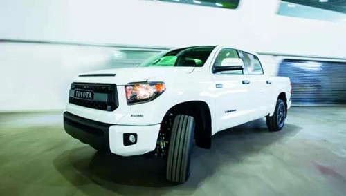 尽管坦途在美国,总是作为外来者被质疑是否了解美国精神,但他却依靠V8发动机的浑厚声浪和宽大的乘坐空间让美国人爱上他,在某些方面他甚至表现得无懈可击。比如在底盘方面,TRD版相较于普通坦途做出了大幅升级,前者搭载的独特低刚度弹簧为前悬架提供了2英寸的额外举升高度。同时,车头部位配备有6毫米厚的TRD铝制护板,加强底盘的保护能力,在豁车和穿越时完全不必为底盘担心。Bilstein外挂储油箱式减振器是最大亮点,他令减振器内部结构更具韧性,以适应长距离奔袭。