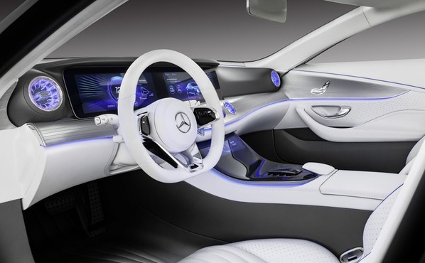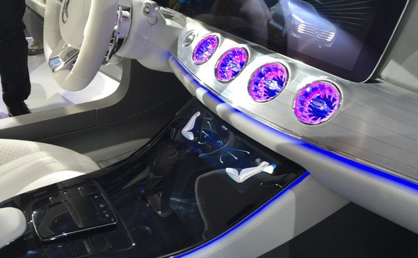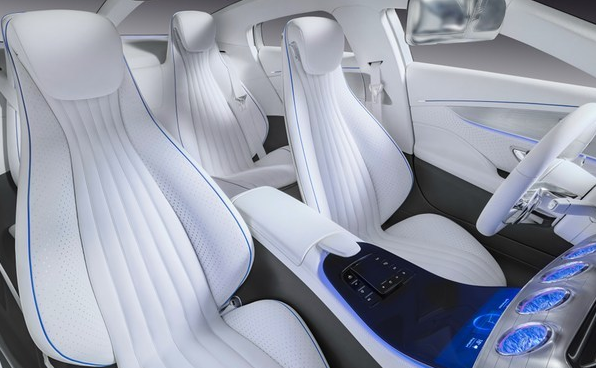 奔驰IAA空气动力智能概念车采用雪茄型车身设计,车头车尾修长优雅,并在内部采用四门四座设计,此外还有全液晶仪表盘与中控屏,当然还少不了触控面板、车内氛围灯与全景天窗。