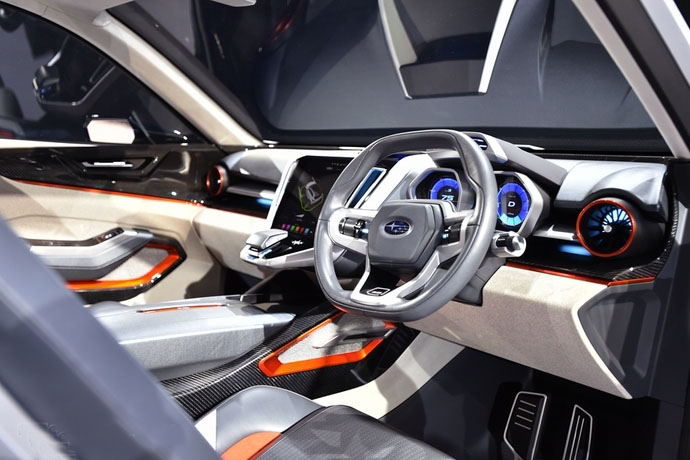 而在车辆内部,2017款力狮Sport以双色内饰为内饰配色的主基调,在座椅等位置还加入了蓝色的缝合线。中控台的造型保持不变,但是换装了黑色高光的钢琴漆面板并增加了7英寸的液晶显示器,与之匹配的信息娱乐系统为STARLINK信息娱乐系统。2017款傲虎Touring在外观方面同样增加了暗灰色的进气格栅以及全新的18英寸轮毂,另外行李架也变成了银色。新车亮相后将作为傲虎车系的顶配车型推出,所以在内饰方面也加入了打孔真皮的Java Brown皮革对座椅进行包裹,在内饰饰板方面还提供了木纹的选择。中控台的变化则看齐力狮Sport。