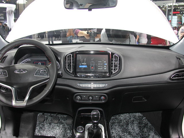 瑞虎7内饰采用了奇瑞的现有的家族式风格,采用了T型的中控台,中央为大尺寸的液晶屏,尺寸几乎达到了iPad的大小,很有视觉冲击力,多功能方向盘采用了全新的样式,有几分性能车型的味道。