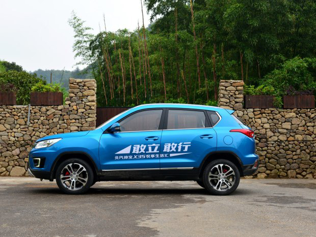 绅宝X35侧面设计简洁,新车前、后翼子板处设计硬朗,另外,双五辐式轮圈、红色刹车卡钳使得绅宝X35看起来较为时尚。此外,其长宽高分别为4300/1815/1640mm,轴距2570mm。