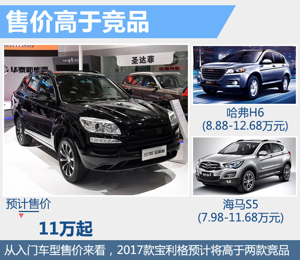 据悉,2017款宝利格作为一款紧凑型SUV车型,在市场销售上,预计上市后将与哈弗H6、海马S5等车型展开正面的角逐。不过,据估计,该款车型可能在售价上会高于两款竞争对手车型。究竟哪款车会赢得更多市场的欢迎,我们拭目以待。