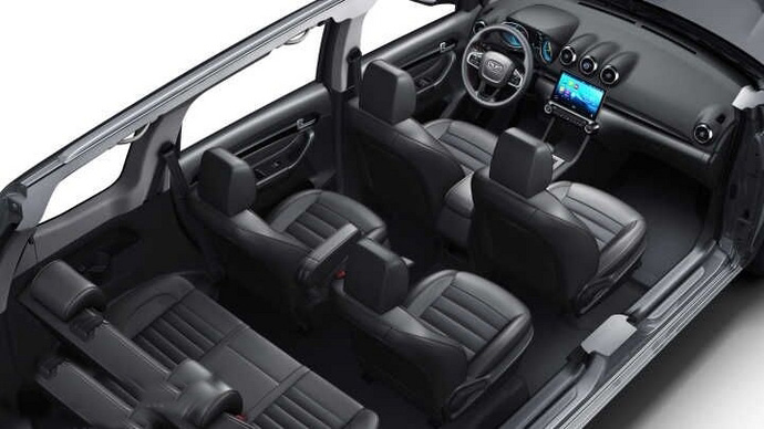 内饰方面:凯翼V3的内饰设计也与凯翼X3相似,车内风格简洁,配备了10.1英寸的液晶显示屏和车载互联系统。座椅方面则采用了2+2+3的布局。