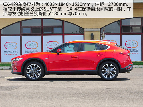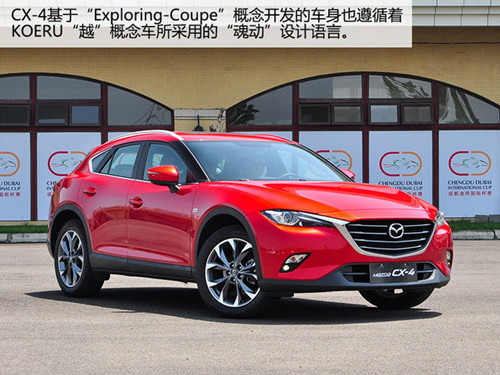 而马自达在北京车展期间推出的CX-4车型,似乎就是看准了紧凑级SUV市场中某个尚且无人涉足的领域而来。虽然马自达官方对CX-4的定位是A级(紧凑级)SUV车型,但仅仅通过目视就可以判断出CX-4与同级别对手显著的差异化趋势。低矮修长的Coupe(轿跑)化车体线条以及不输同级竞品的离地间隙显然是CX-4在同级别中独有的产品特质,而马自达显然希望凭借这一特质率先抢占细分市场,那么CX-4究竟胜算几何?不妨跟随爱卡汽车一起探究一番。