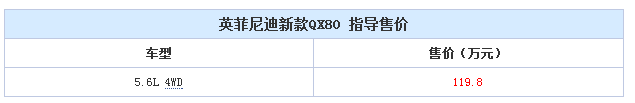 英菲尼迪新款QX80现已上市 售价为119.8万