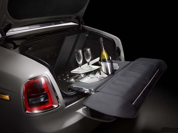 典藏版的另一个亮点为后备厢后部可以放置酒杯架,还安装了专门的冰箱,内部可以容纳两瓶标准规格的香槟及8个劳斯莱斯定制酒杯。